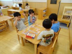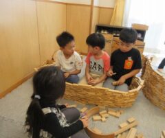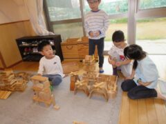 お部屋では友達と話し合いながら一つの物を作り上げています。
