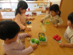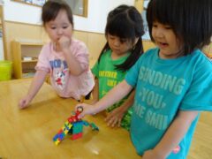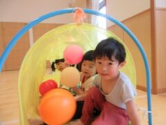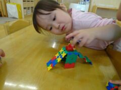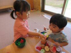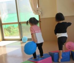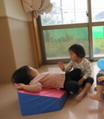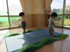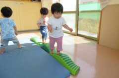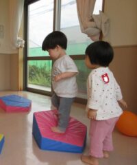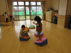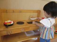バランスをとりながら少し高い場所を歩いたり、大好きなおままごとをしたり毎日元気いっぱい遊んでいます。