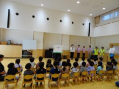 優しい心、思いやりの心のお話を聞き、『困ったこと、助けてほしいこと等は先生や周りの大人の人に話す』『ごめんねが言えるように』の2つの約束をしました。