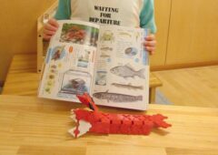 図鑑を見ながら想像を膨らませてザリガニを作って見せてくれました。