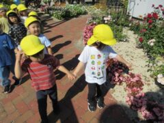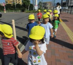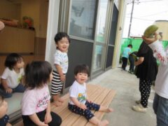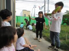 高砂農園で育てた大きくなった野菜をゆり組・たんぽぽ組のお友達が見せてくれましたよ。