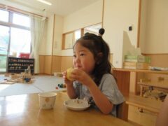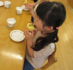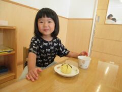 十五夜の日のおやつはうさぎ蒸しパンです。