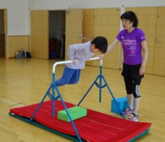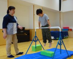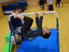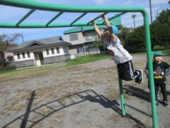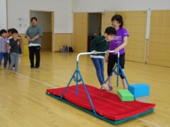 たんぽぽ組は初めての鉄棒に挑戦しました。