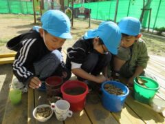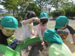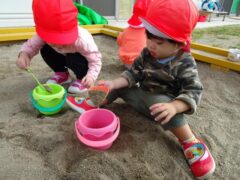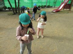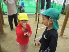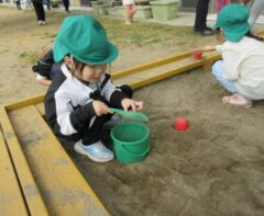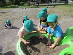 砂場やすべり台、どんぐり探しなど秋の風を感じながら戸外で過ごしています。