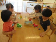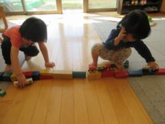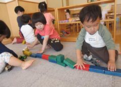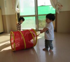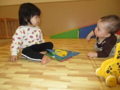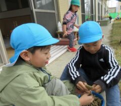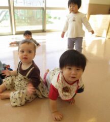 散歩や園庭遊びをしたり、お部屋で過ごしたりと、友達とのかかわりを毎日楽しんでいます。