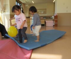 福祉センターへ散歩に行ったり園庭で遊びました。