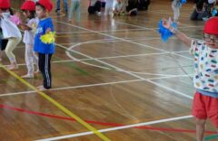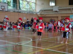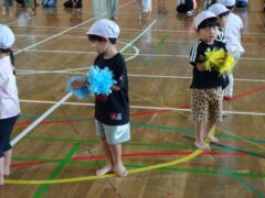 曲に合わせてゆり組が演奏し、たんぽぽ組はフラッグを持ち演技をしましたよ。