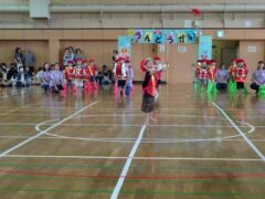 さすが年長さん!鳴子を持ちしっかりとポーズも決めてかっこよく踊りました。