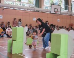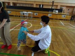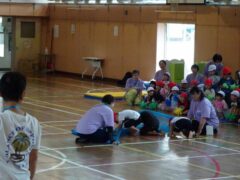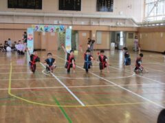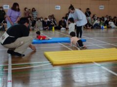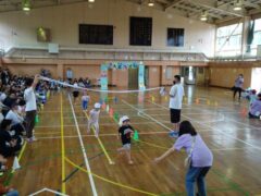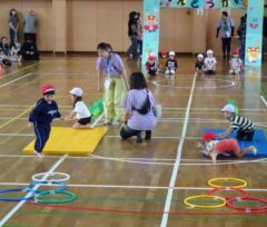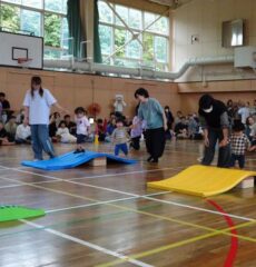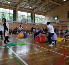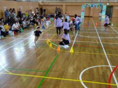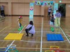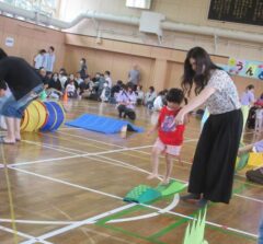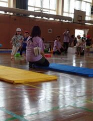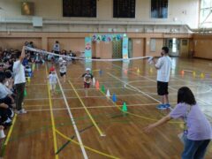 マットや縄跳び、網くぐり等、年齢ごとに一人一人が一生懸命取り組みました。