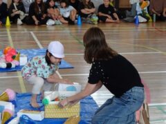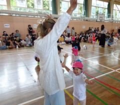 ちゅうりっぷ組の親子競技はダンシング玉入れです。
