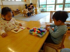 お部屋で友だちとのやりとりを楽しんだり、好きな遊びをじっくりと取り組んでいます。