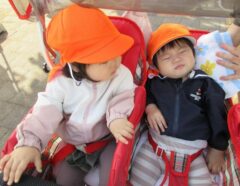 天気のいい日には散歩車に揺られながら園周辺へ散歩に出かけました。