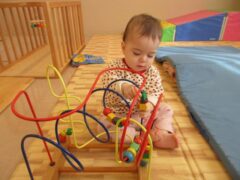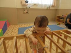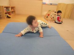 指を使って上手に玩具を摘まんだり、お部屋の中を歩いたりずり這いをしながら移動したりと活動範囲が広がっています。