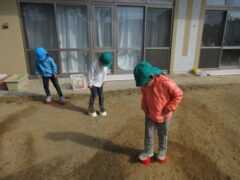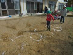 園庭や散歩など戸外でもたくさん体を動かして遊んでいますよ。