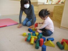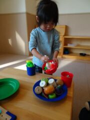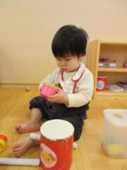 考えながら積み木を積んだり、おままごとで料理を作ったりと好きな遊びを満足いくまで楽しみます。