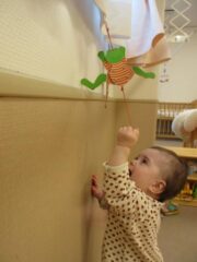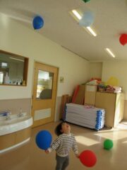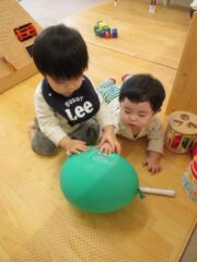 大好きな風船遊びでは、風船が天井に付き落ちてこない不思議さに気づいた子もいました。