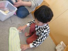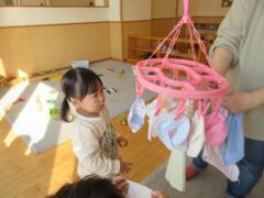指先も上手に使えるようになり、洗濯ばさみで赤ちゃんの洋服を干してくれました。