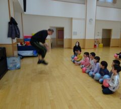 ひのきやさんは全身を使って楽しくリズムを教えてくれます。