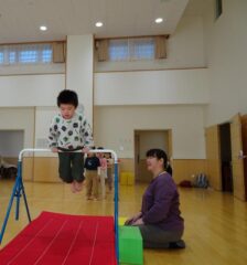 鉄棒は一人で前回りが出来るようになったたんぽぽ組さんです。
