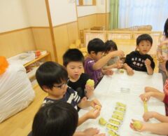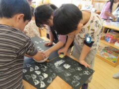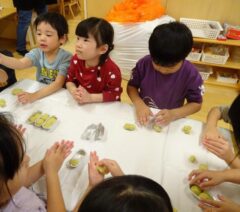 『さつまいもスタンプ』をみんなで押しましたよ。