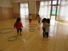 椅子取りゲームや色鬼など、ルールがわかり友達と一緒に楽しんでいます。