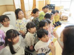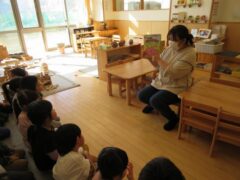 ふれ合い遊びでは、ゆり組・たんぽぽ組さんがお家の人の役になり、一緒に手遊びをしてくれました。
