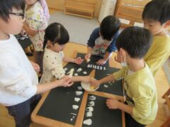 こねたり丸めたり、感触を楽しんでいましたよ。
