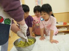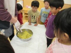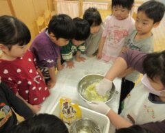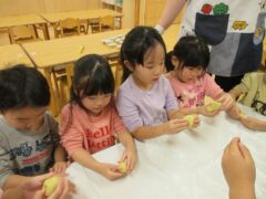 茹でたさつまいもを潰し、小麦粉を混ぜて『さつまいも粘土』を作りました。