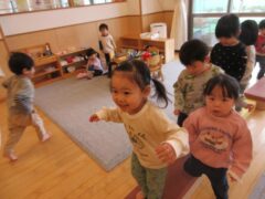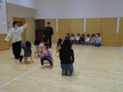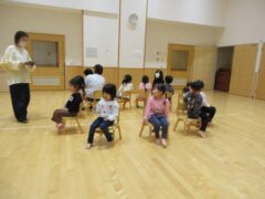 ちゅうりっぷ組はルールを守り、椅子取りゲームをしています。