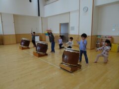 保育参観に向けた太鼓練習を頑張っていた年長さん。