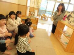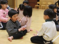たんぽぽ組のお友達がお家の人の役になって、ふれ合い遊びをしてくれました。