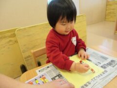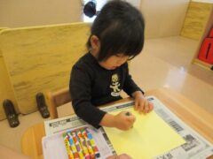 描いたり指先を使った遊びをしたりと、じっくりと一人遊びをしています。