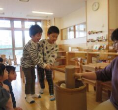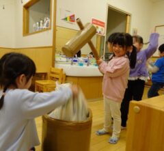 友達と一緒についたり、おもちをこねたりと楽しんでいます。
