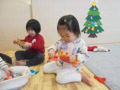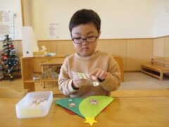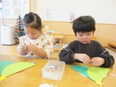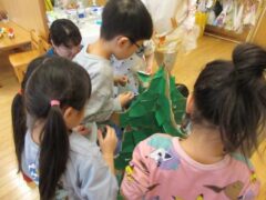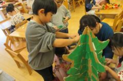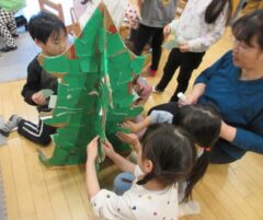 ゆり組・たんぽぽ組がクリスマスツリーを作りました。