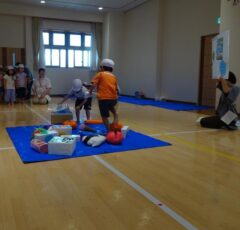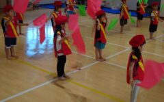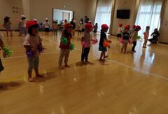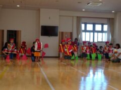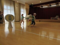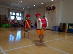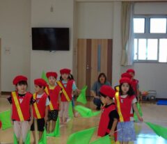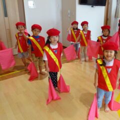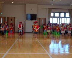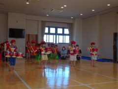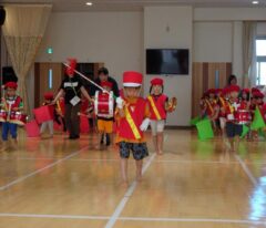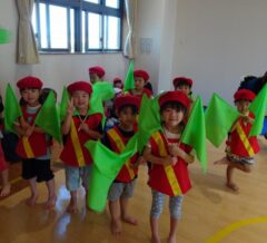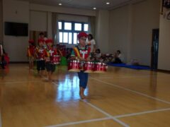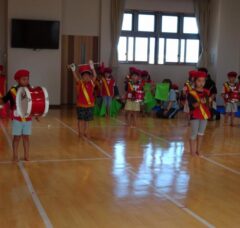 ゆり組の楽器演奏とたんぽぽ組のフラッグ隊です。