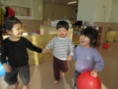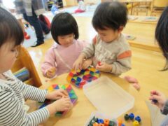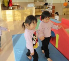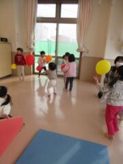 小さいクラスのお友達もみんな元気いっぱい、お部屋で遊びましたよ。