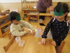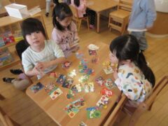 お部屋では福笑いやすごろく、かるたなどお正月の遊びを楽しみました。