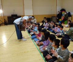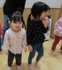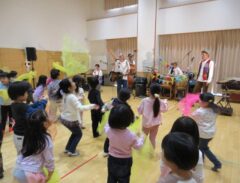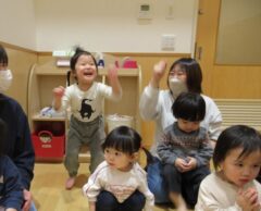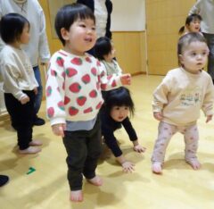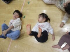 楽しい音楽に合わせて子ども達は手拍子をしたり踊ったり、転がったり・・・。