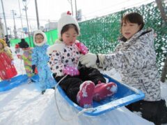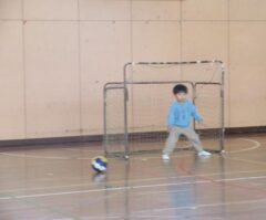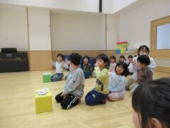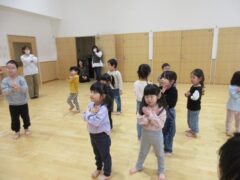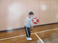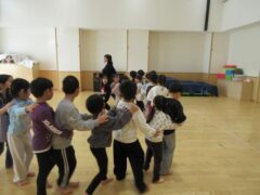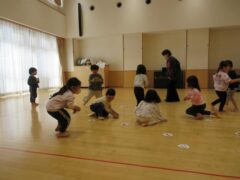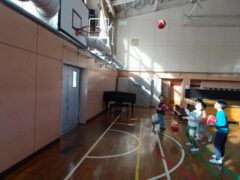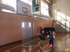 近隣のこども園のお友達と一緒に中部小学校の体育館で遊びました。