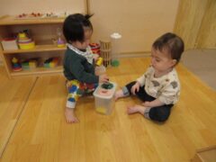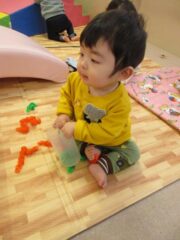 たまごさんは摘まんだり握ったり、指を使って遊ぶ玩具がお気に入りです。