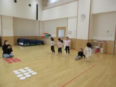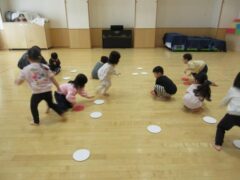 転がしドッジボールやじゃんけん列車、絵合わせゲームなどルールのある遊びを友達と一緒に楽しみました。